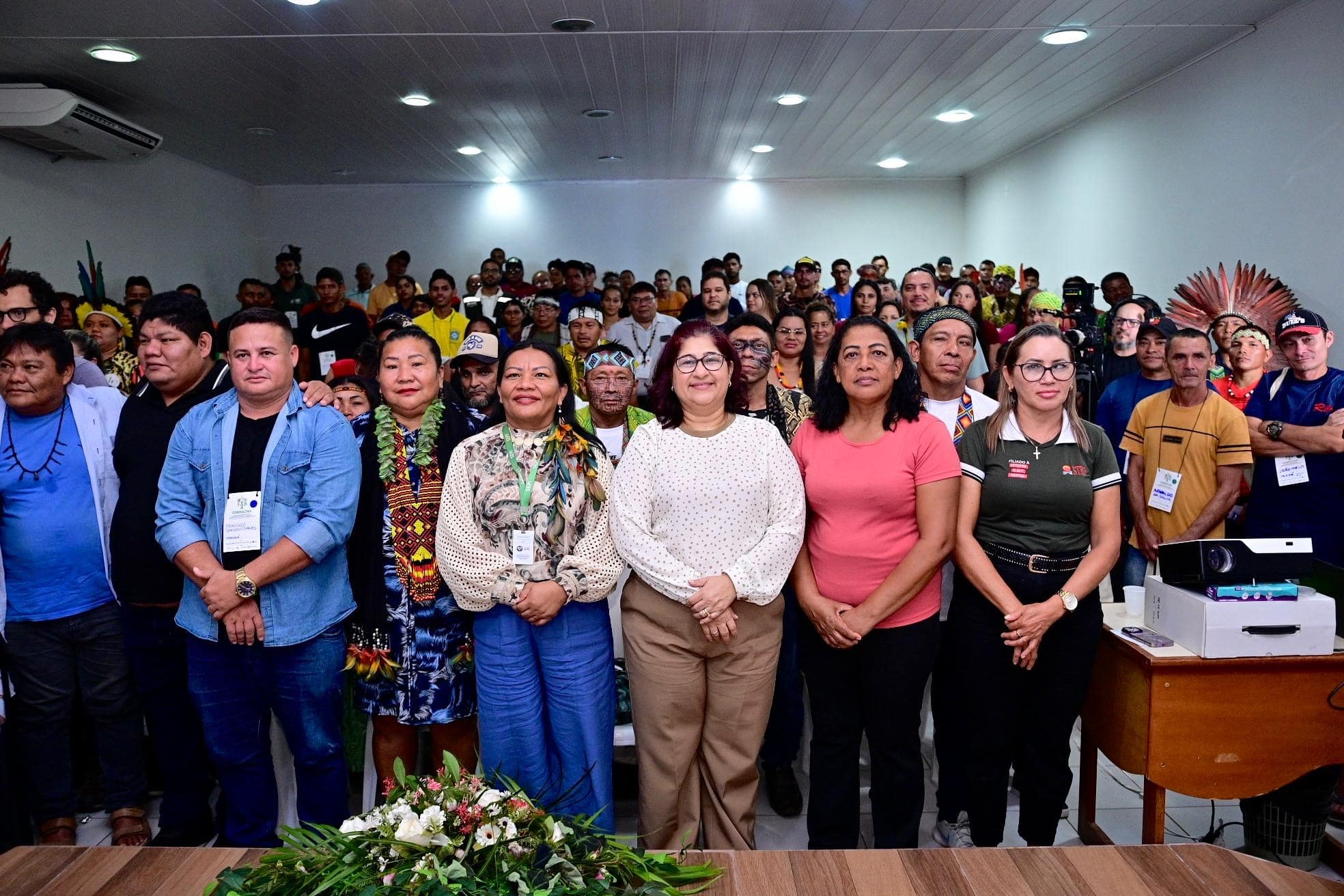 Consulta teve apresentação grupo de música Ixti Naranahi Shane Keneya, composto por Kene Meni Shanenawa, Fakaynu Shanenawa, Manayhu Shanenawa e Txana Bire, da Aldeia Morada Nova. Foto: Ingrid Kelly/SecomCom a formação, a expectativa é que as lideranças possam participar, de forma qualificada, do fórum deliberativo que será realizado em Rio Branco, nos dias 12 e 13 de junho, com os delegados eleitos nas regionais para debater os resultados e deliberar coletivamente sobre as atualizações e propostas.