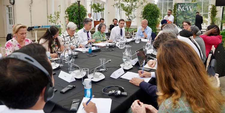 No Jardim Botânico Real de Kew, ministros e outros representantes de onze país — Reino Unido, Colômbia, Gana, Malásia, Noruega, Indonésia, Alemanha, França, Guiana, Emirados Árabes Unidos e Peru —, da União Europeia e do Banco Mundial se reuniram com as ministras do Meio Ambiente e Mudança do Clima, Marina Silva, e dos Povos Indígenas, Sonia Guajarara, e o presidente da COP30, embaixador André Corrêa do Lago, para debater os compromissos de cada país com a criação do TFFF, os detalhes técnicos ainda em discussão e o impacto do fundo para a conservação das florestas tropicais e subtropicais úmidas.