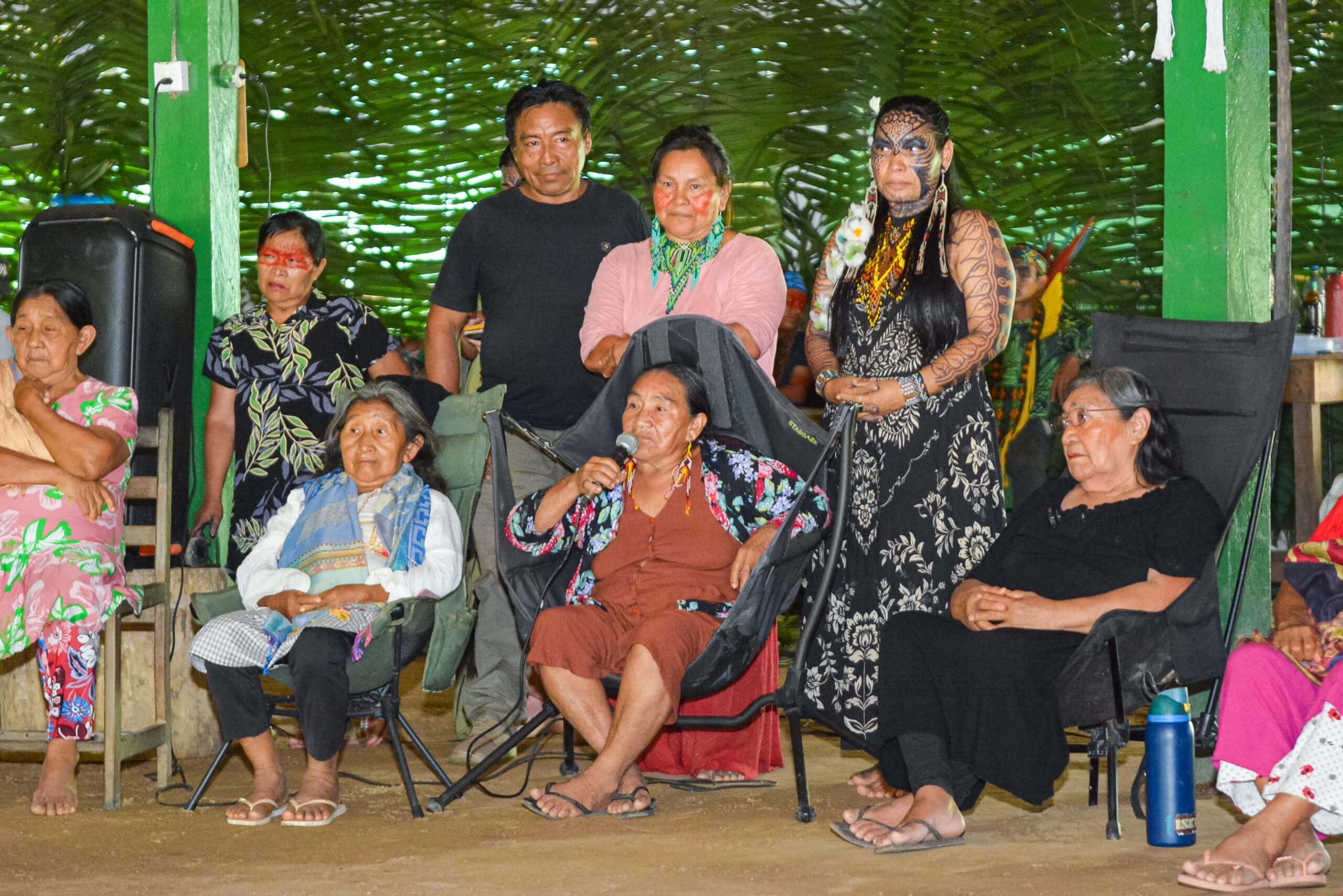 “Essa ideia de estar aqui é juntar o que antes já era junto. Pensei neste momento, porque cada mulher tem uma história de luta, de conquista. Nossas mães são mães do ar, que cortaram seringa com os nossos pais, que cuidavam da casa. Para nós foi dada a maior missão aqui na terra: a do cuidado”. Com essas palavras, a cacique Maria Júlia Yawanawá deu início ao Primeiro Encontro das Mulheres Yawanawá.