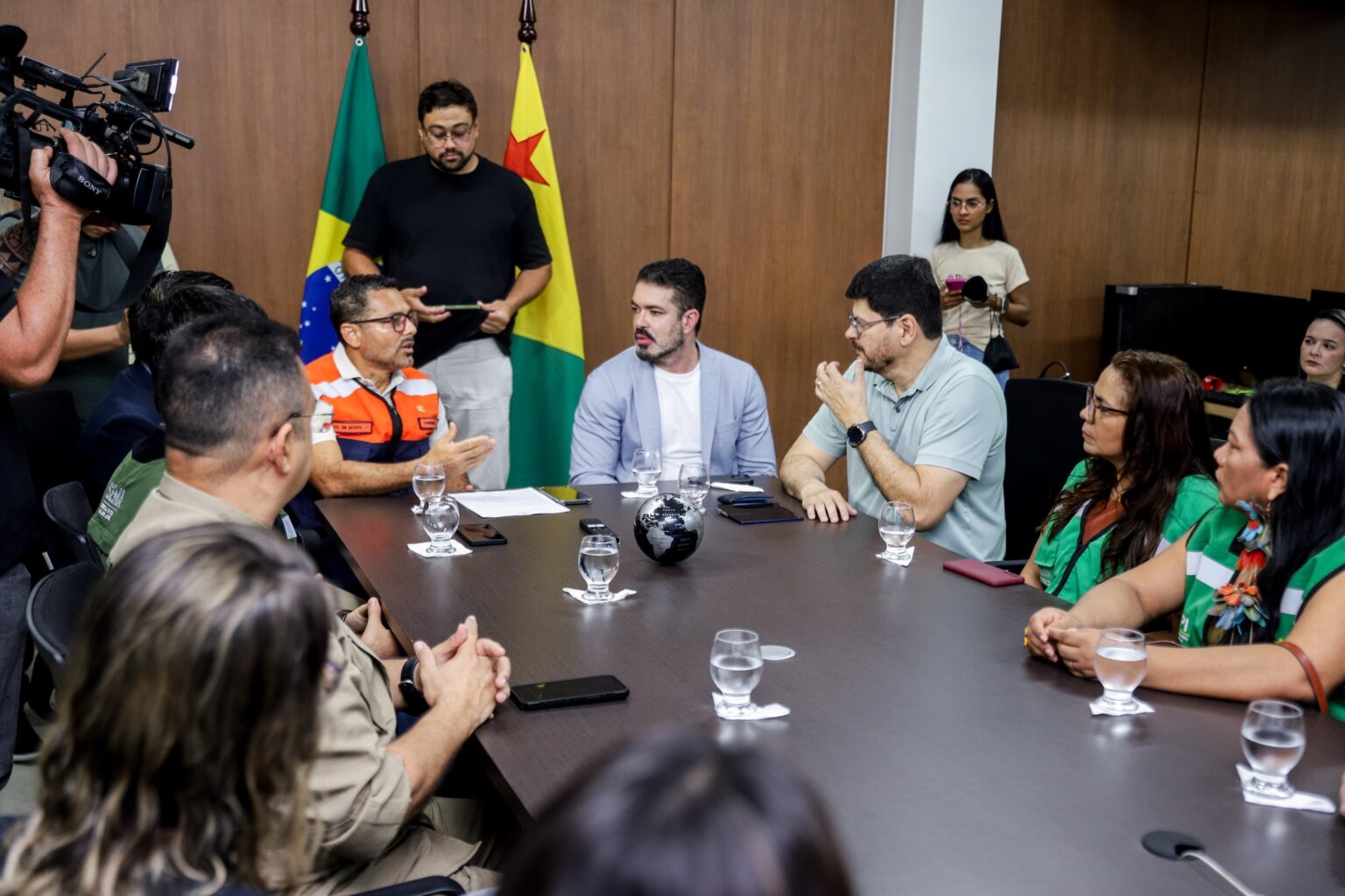 Estavam presentes representantes do Sistema Integrado de Meio Ambiente; secretário de Estado da Casa Civil, Jonathan Donadoni; da Secretaria de Estado de Assistência Social e Direitos Humanos (SEASDH), representada pela chefe de Gabinete, Sandra Amorim; da Secretaria de Estado do Meio Ambiente (Sema), Leonardo Carvalho; do Corpo de Bombeiros Militar, coronel Charles Santos; da Defesa Civil, coronel Carlos Batista; do Institui de Meio Ambiente, Ivo Pericles, diretor de Licenciamento Ambiental de Atividades Rurais, Florestais e Fauna; da Secretaria de Estado de Agricultura (Seagri), Temyllis Silva; da Secretaria de Estado de Saúde (Sesacre), Ana Cristina Moraes; da Secretaria de Educação e Cultura (SEE); da Secretaria de Estado de Comunicação (Secom), Nayara Lessa; da Secretaria Extraordinária de Povos Indígenas, Francisca Arara; e da Polícia Militar (PMAC), subcomandante-geral, coronel Kleison Albuquerque.