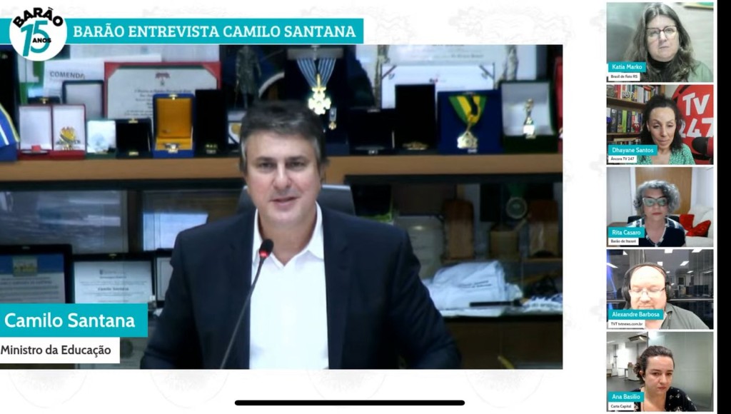Nesta segunda-feira, 6 de outubro, o ministro da Educação, Camilo Santana, participou de coletiva de imprensa com mídias independentes promovida pelo Centro de Estudos da Mídia Alternativa Barão de Itararé, veiculada no canal da organização no YouTube.