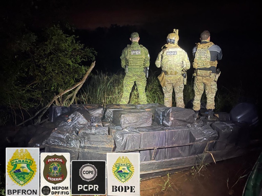 Foz do Iguaçu/PR. Policiais federais, civis e militares apreenderam, na noite de quarta-feira (1/10), uma embarcação e um veículo que transportavam caixas de cigarros estrangeiros contrabandeados do Paraguai.
