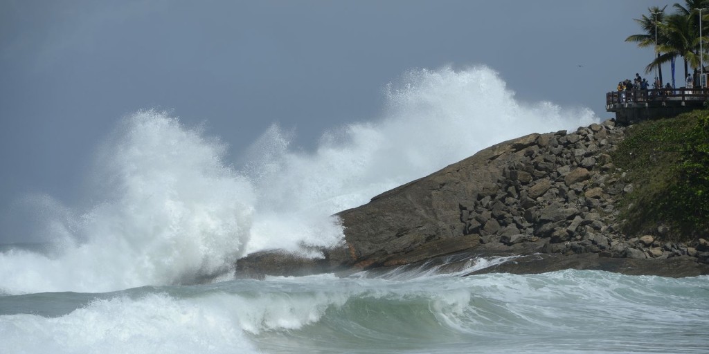 Ressacas têm atingido o litoral fluminense há alguns dias. Neste fim de semana, por exemplo, o mar invadiu a pista da Avenida Delfim Moreira, na orla do Leblon, na zona sul da capital, o que provocou a interdição da via.