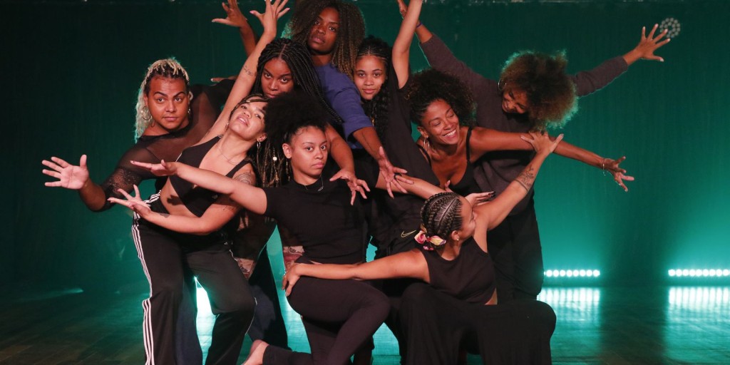 “A gente está trazendo as nossas histórias, que têm a ver com o fato de sermos mulheres negras e de como conseguimos nos reinventar a partir da arte. Nesse sentido, é um espetáculo extremamente político”, conta Aline Valentin, uma das nove bailarinas. “Eu sou a mais velha desse elenco. Estou nessa trajetória há 20 anos, sou professora de dança afro, pesquisadora, criadora. Para mim é uma oportunidade linda estar aqui com uma nova geração de bailarinas, com diferentes linguagens de dança negra”.